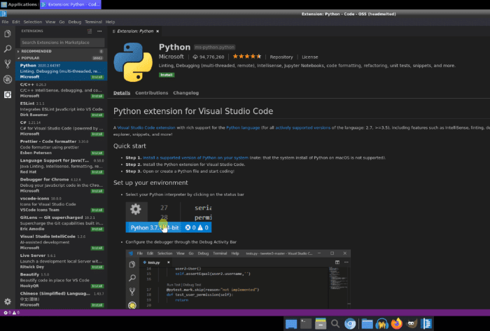 Pre-installed apps like VS-Code, Firefox and Chromium